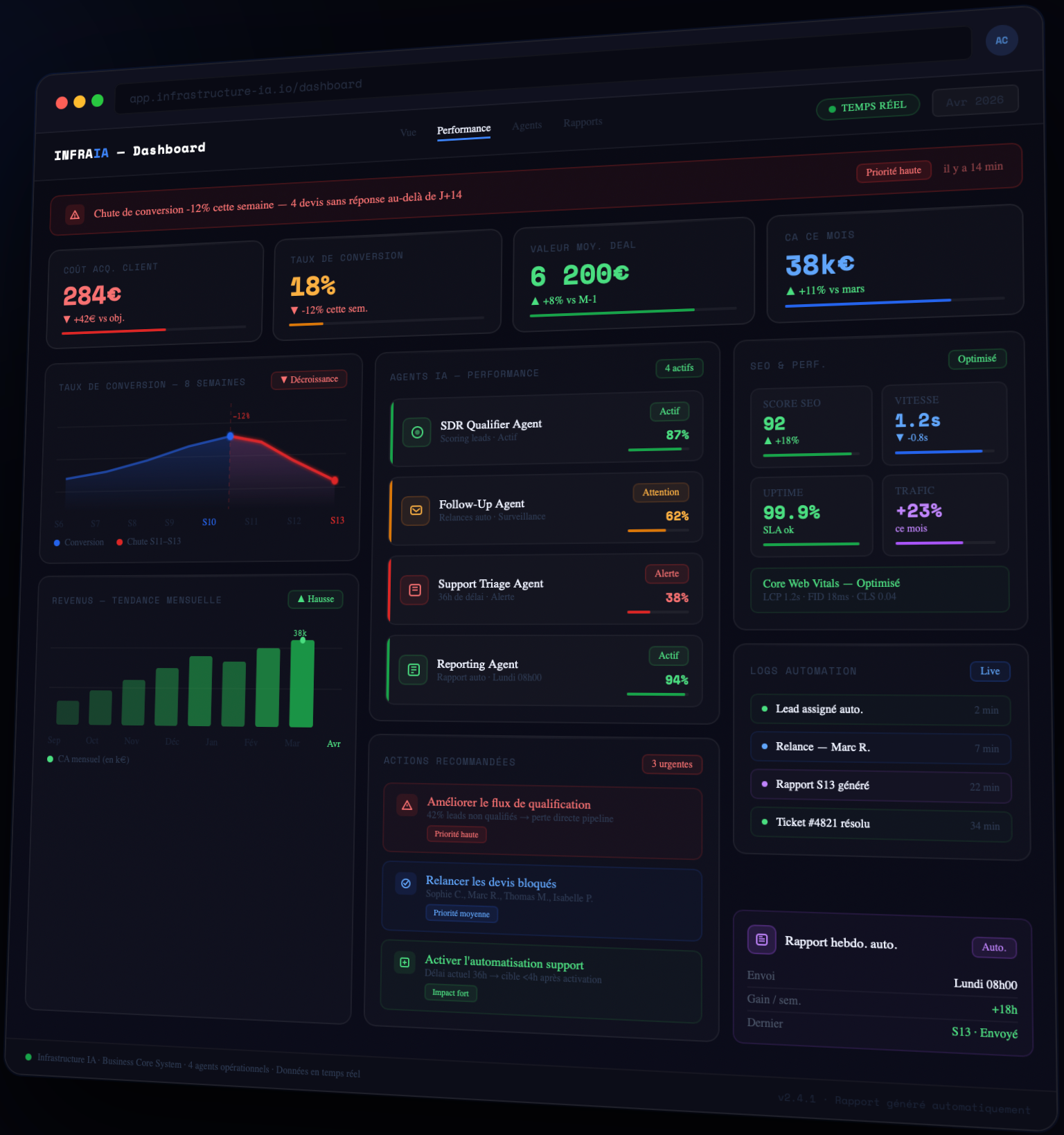 Nous assurons la stabilité, la performance et le pilotage continu de votre écosystème digital.